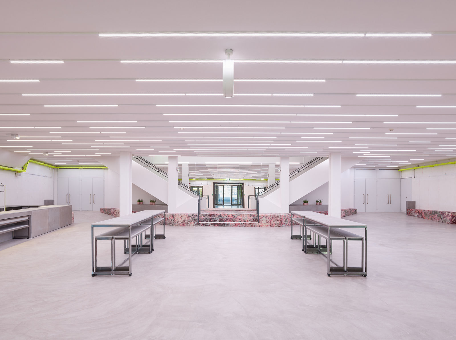 Die kubische Form verleiht dem 350 Quadratmeter grossen Raum seinen Namen. Die architektonische Konstruktion zeigt keine Spuren der Industrietätigkeit mehr, sondern erscheint in einheitlichem grauen Beton. Daher ist der Raum extrem wandelbar. Die Box bietet Platz für eine Tribüne für bis zu 220 Personen und eignet sich sehr gut für Vorträge, Podiumsdiskussionen, Filmprojektionen oder Konferenzen. Sie kann aber auch in einen kleineren Speisesaal, eine Lounge oder eine schillernde Eventkulisse für maximal 400 Personen verwandelt werden.