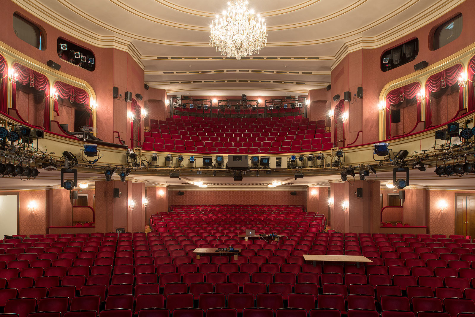 Unser Theatersaal ist die perfekte Bühne für glanzvolle Auftritte bei Podiumsdiskussionen, Lesungen, Preisverleihungen, Konzerten, Konferenzen oder Vorträgen. Der Saal überzeugt durch seine hervorragende Akustik und seine hochwertige technische Ausstattung. Im Pfauensaal können bis zu 650 Gäste in den roten Polstersesseln Platz nehmen.