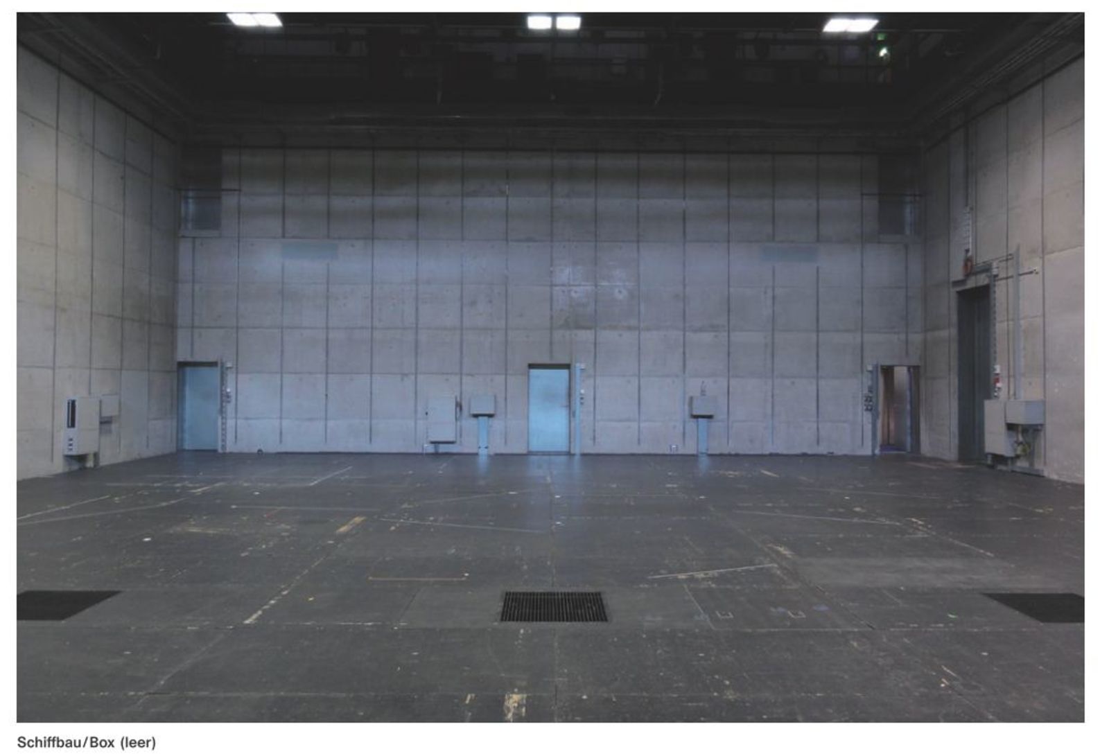 Die denkmalgeschützte Industriehalle, in der noch bis in die 1980er Jahre Schiffe gebaut wurden, beherbergt heute zwei Spielstätten: die Schiffbau-Halle und die Box. Darüber hinaus befinden sich hier vier Probebühnen sowie die Ateliers und Werkstätte des Theaters.