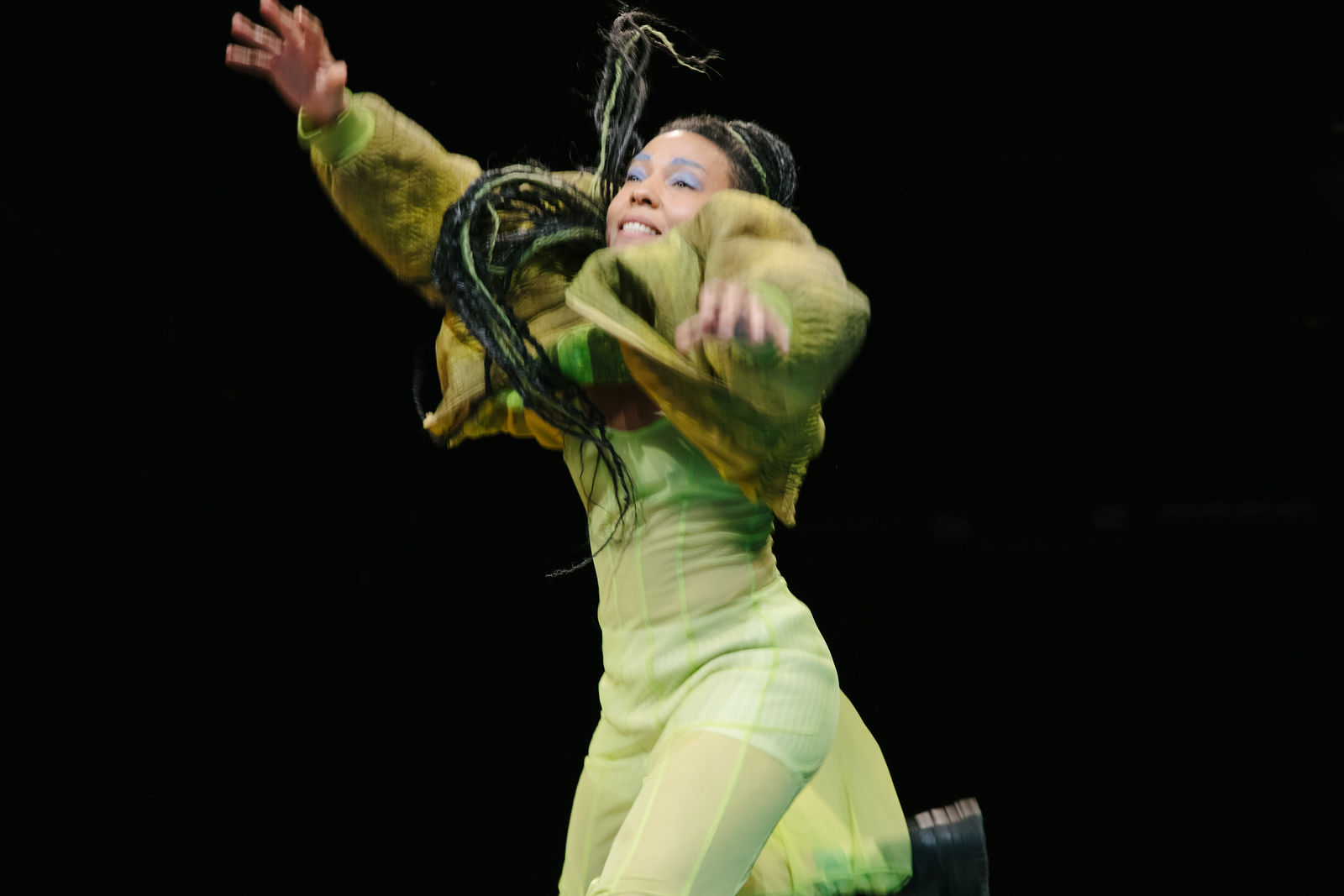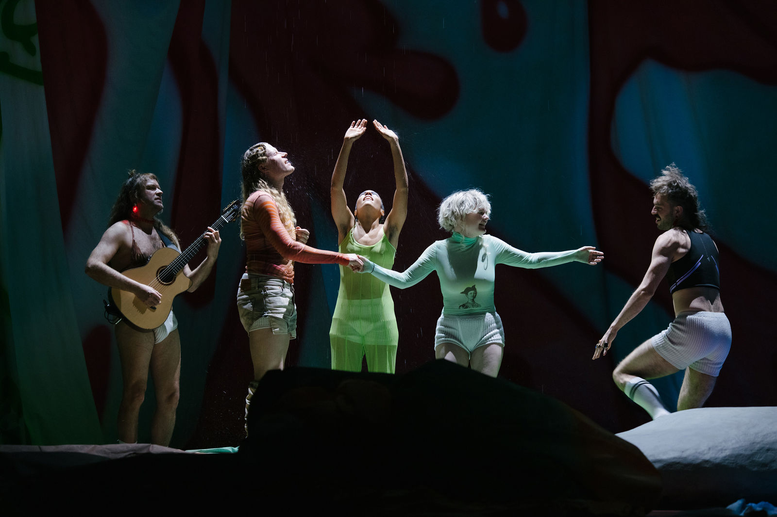 Kim: Ich mag, dass ich nicht bereits im Vorhinein weiss, was geschehen wird. Wir haben ja teils gescripteten Text, können aber auch improvisieren. Manchmal geht mir auf dem Weg zum Pfauen gerade etwas durch den Kopf, irgendein Bild, mit dem ich dann an diesem Abend arbeiten will. Zum Beispiel haben wir ja auch nach der Premiere nochmal über das Ende gesprochen: dass ich da nicht versuchen muss, ein bestimmtes Gefühl, die Euphorie, immer zu reproduzieren, sondern dass ich da aus dem Moment heraus etwas entwickeln kann.