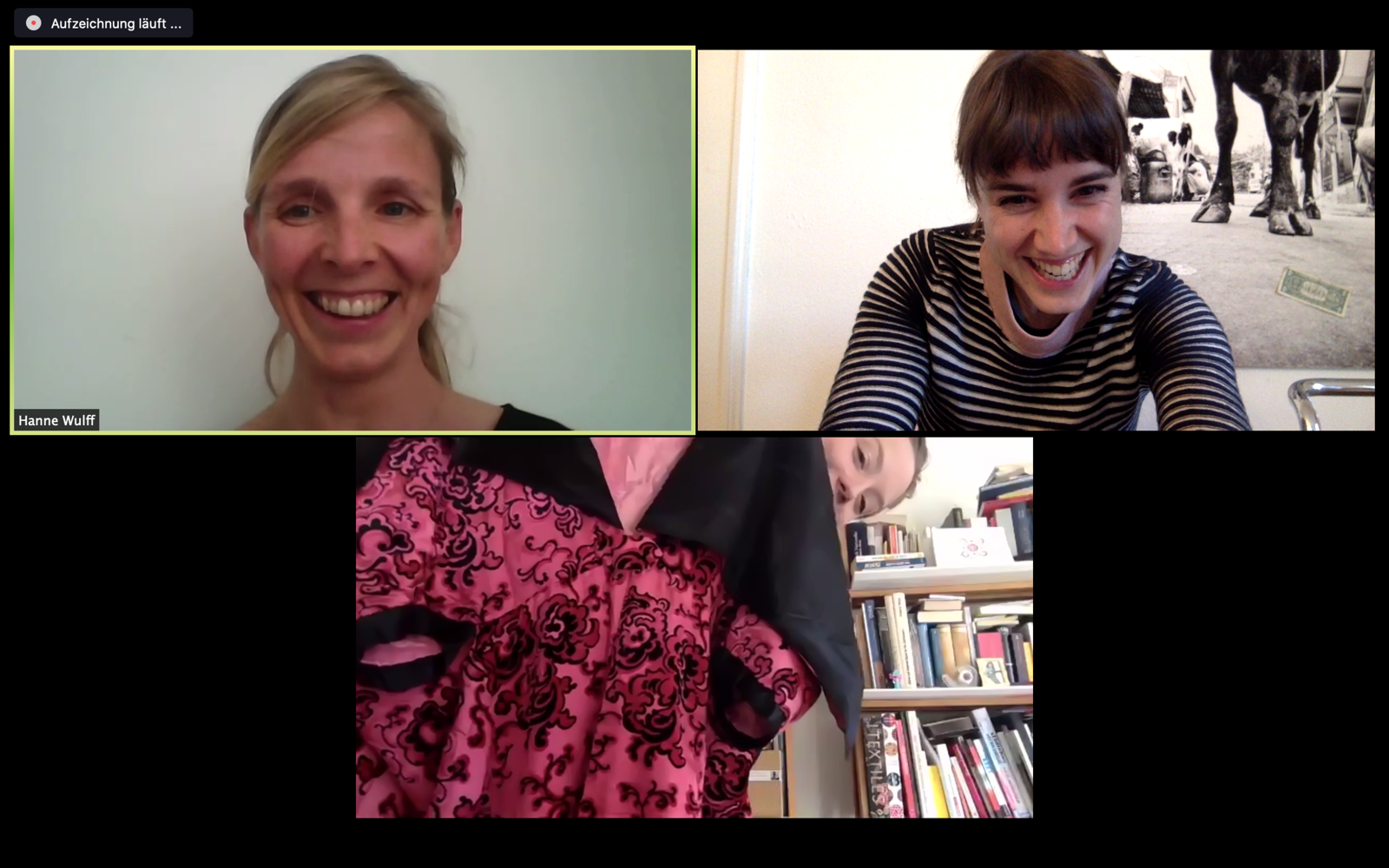 Ein Gespräch zwischen Hanne Wulff, Leiterin des Kostümwesens, und der Co-Leiterin der Öffentlichkeitsarbeit Sophie Grossmann auf Zoom - einer digitalen Plattform für virtuelle Kommunikation. Gesprächsmoderation: Elena Manuel