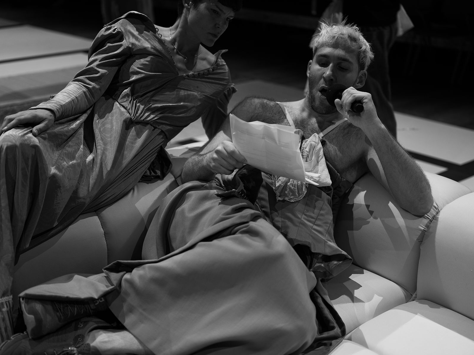 How can something arise from nothing? This question has occupied not only philosophy since its beginnings, but also the U.S. choreographer Trajal Harrell. In his new work, he searches for forms that develop freely and without external influence. The starting point of the project is an obscure gathering of dazzling characters in the vast dimensions of the Schiffbau-Halle. In the gathering of dancers and actors from the Zurich ensemble, the potentials for revolution and beauty unfold in equal measure, concepts of something and nothing are brought into juxtaposition. An iconography that, between historical references and pop culture, between everyday gestures, social patterns and artificial poses, conjures up the powers of the body. In the alchemy of theater, life emerges from no particular theme… The team starts with nothing, wanders here and there, but all withstanding most of all together.