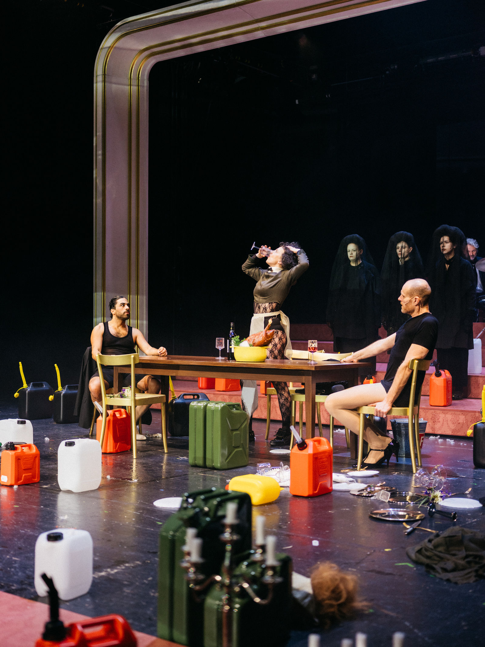 When Max Frisch's Biedermann und die Brandstifter premiered at the Pfauen in 1958, the positive reactions were based on a misunderstanding: the audience did not understand the play as a farce about bourgeois hypocrisy but quite literally as an appeal not to let strangers into their house. Max Frisch was dismayed. Now co-artistic director Nicolas Stemann is revisiting the Swiss satire as the last production of his tenure at the Schauspielhaus.