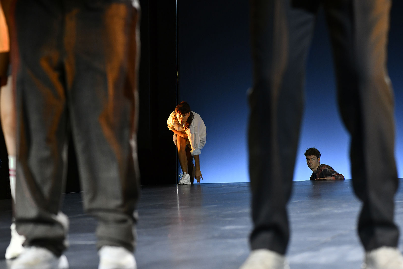But it is not only on the level of architecture that this production understands the stage as a space of possibility, as a place where anything can take place, as a place that can become any other place. If the production initially brings an architecture into awareness to which the audience has no access and which remains hidden from most people, the focus gradually shifts to the protagonists.