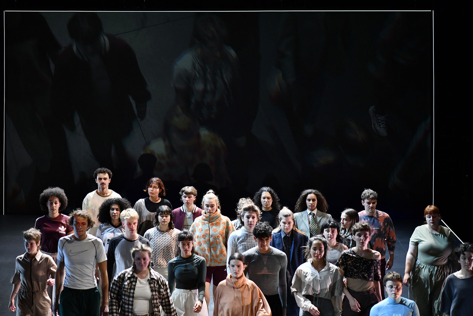 The ensemble for this play is made up of 30 young adults from the network that has formed around the Schauspielhaus Zürich over the last four years. They attended the Youth Club or follow the theatre on Instagram, have participated in the Theaterjahr, are working in the cloakroom, or are already familiar with the spotlight due to their participations in other plays by in-house director Suna Gürler, or the Open Stage: