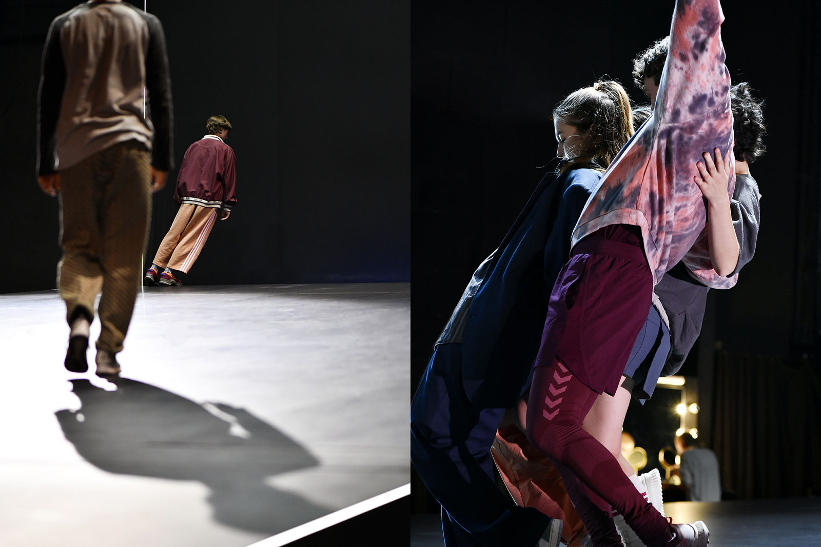 Those who follow Samira Graf’s movement through the play are not the only ones to be reminded of the extent to which a life is always both embedded in a network and experienced in a highly individual way. This simultaneity is also always visible in small solo moments: when Alina Rehsteiner, Gizem Baruk, Moubarak Djibril, Lionel Schwägli, Dominik Schüepp, Jascha Harke, Flynn Jost or Valerie Tveiten each set out on their own to make a new start, move around in an integrated and yet clearly detached manner, break away from the group, or even remain by themselves. The tragedy of this becomes clear at the latest when Dariia Yelahina asks the audience to open their eyes to the reality of the war in Ukraine, from which she has fled and now is part of this network, but is also alone with this experience in it.