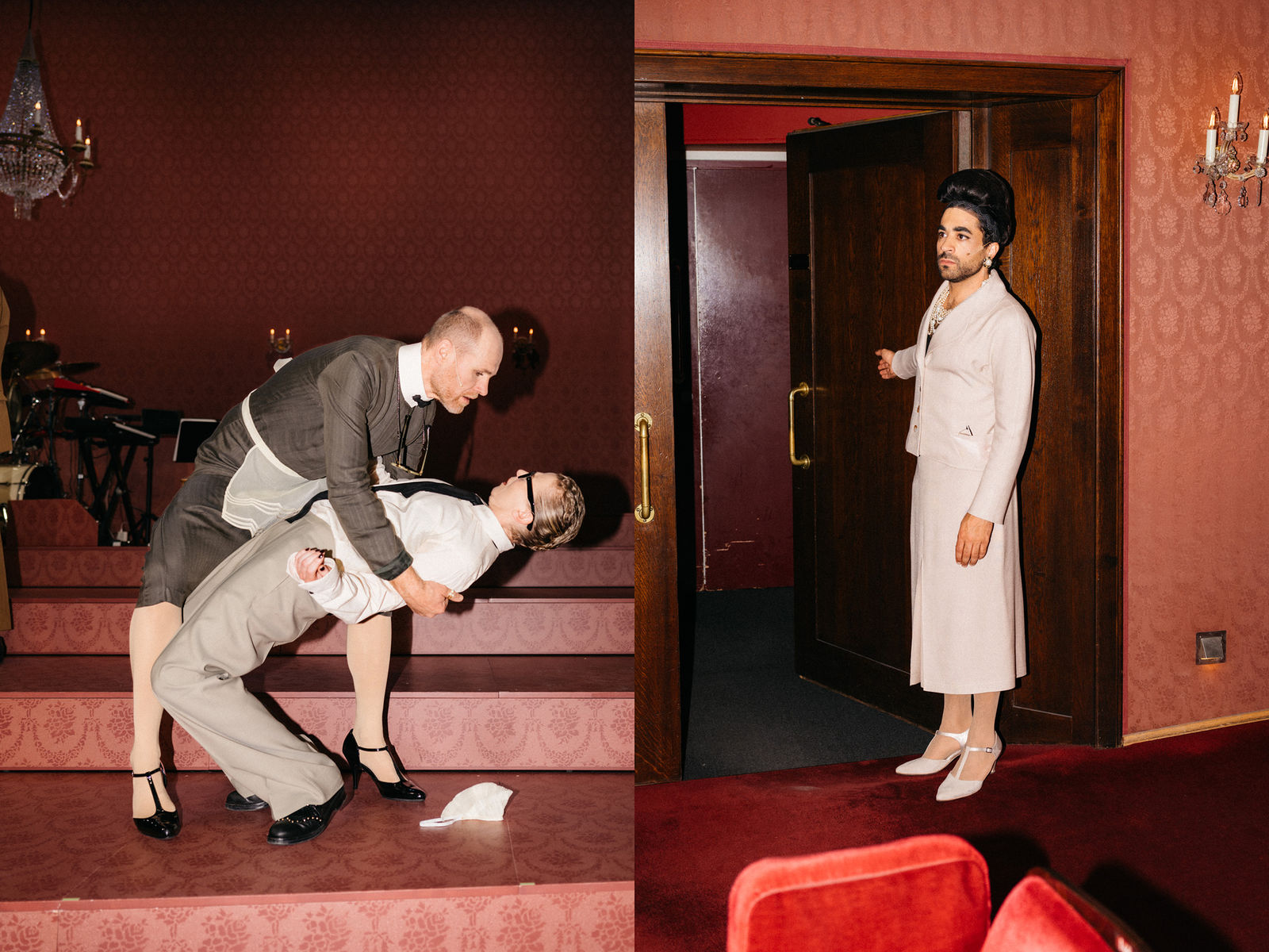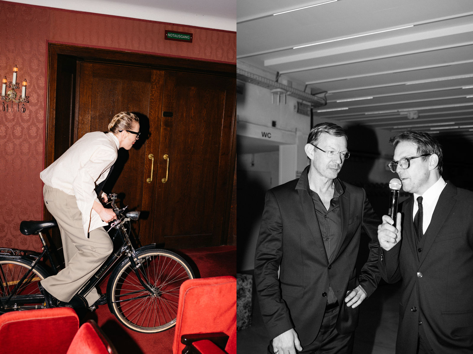 Biedermann’s real opponent would therefore be not only the supposed extremes of the political spectrum, but also the imagination, of which Kant already claimed in his “Critique of Judgement” that its “unregulated freedom” would lead to nothing but “nonsense” if its wings were not properly clipped by reason. Although less politically rigid than Bertolt Brecht, whose legacy Frisch explores in this “Lehrstück ohne Lehre” [translates to “Play Without a Lesson”], his Biedermann in this interpretation is on the trail of a central question about the violence of capitalist economic activity: What does the exploitation of others have to do with the suppression of one's own sensuality, the fear of the infinitely productive multiplicity of life itself?